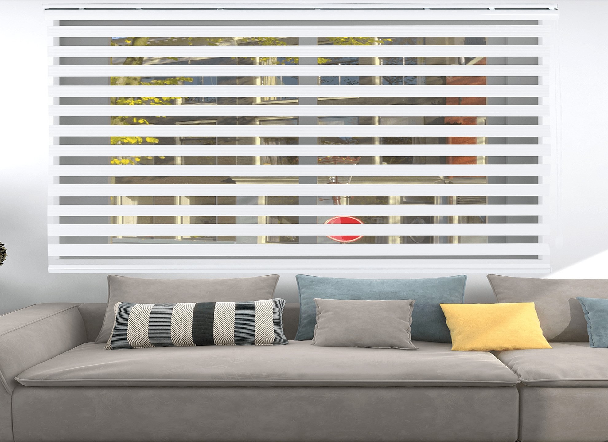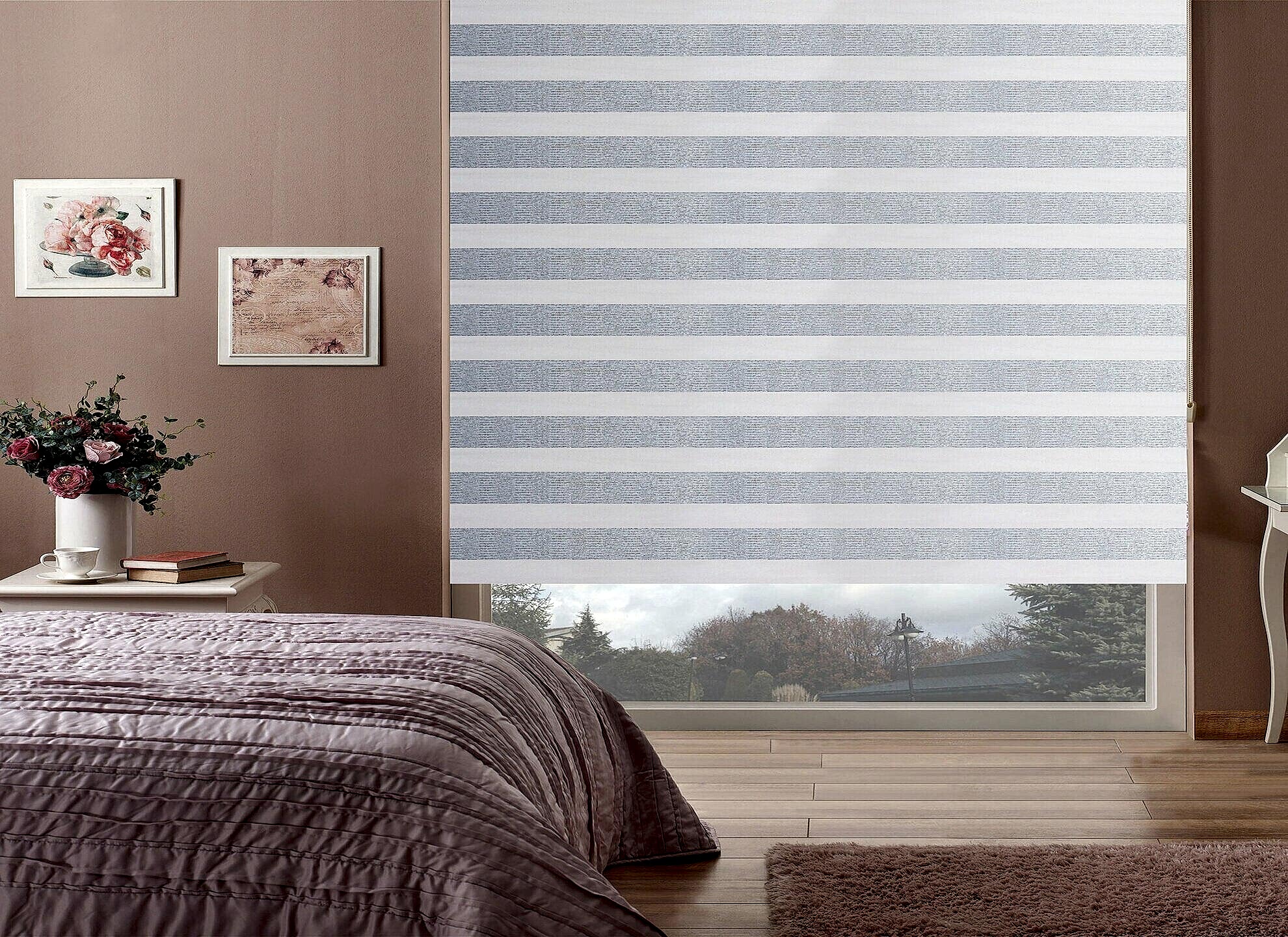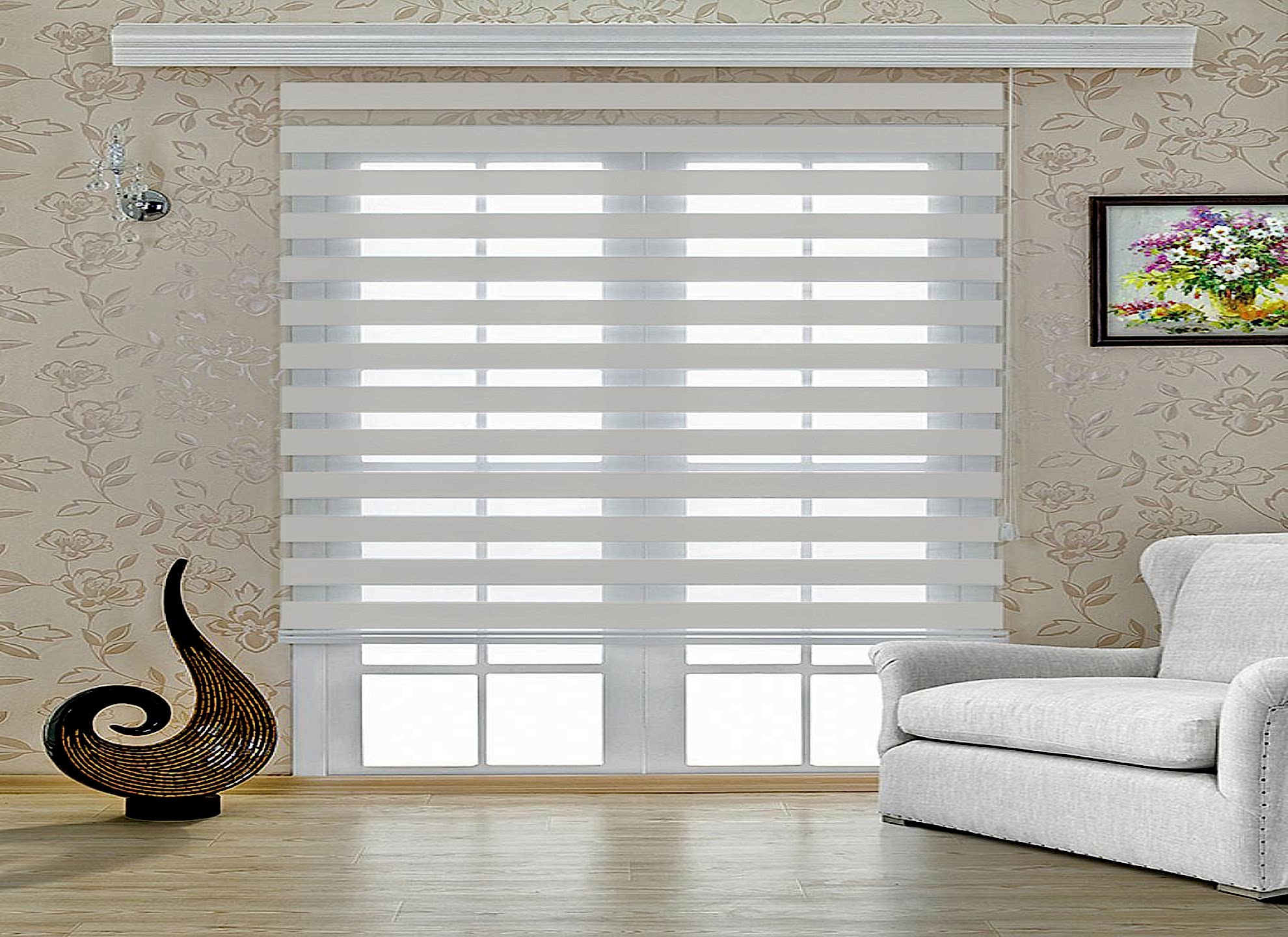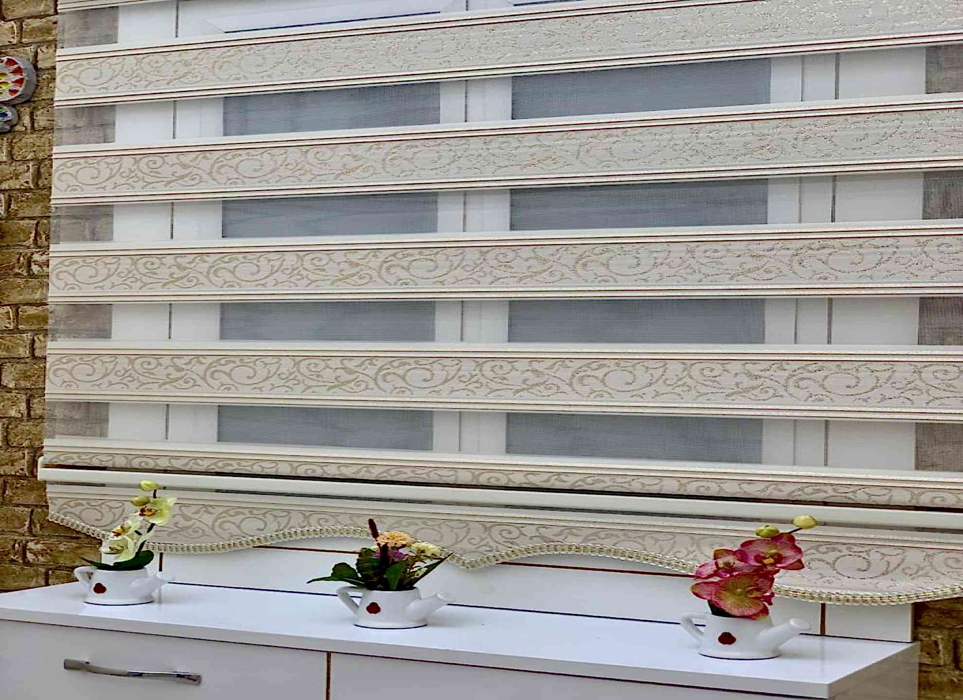 - Dekoratif Görünüm; Zebra perdeler, modern ve şık bir görünüme sahiptirler. İki farklı kumaşın bir araya gelmesiyle oluşan desen, odanıza dinamik bir dokunuş katar.